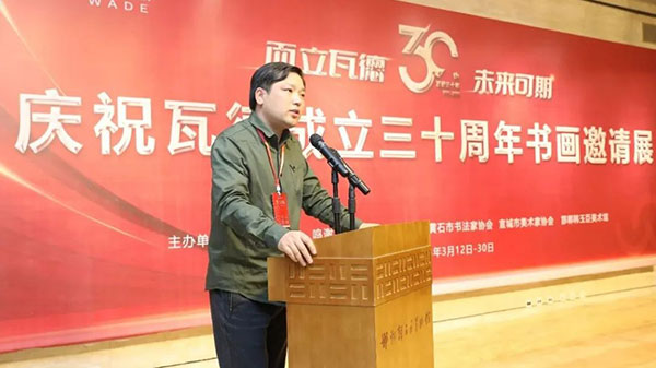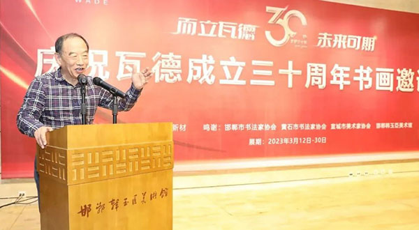 瓦德集團(tuán)董事長謝富強(qiáng)向與會的各路藝術(shù)家及賓朋表達(dá)了熱情歡迎。向河北邯鄲、湖北黃石、安徽宣城三地文聯(lián)、書協(xié)、美協(xié)和書畫家們的大力支持表達(dá)了衷心感謝。尤其對中國知名書畫家,邯鄲市書協(xié)主席,文化名人,著名企業(yè)家韓玉臣先生對瓦德集團(tuán)慶典活動的鼎力支持表達(dá)了深深的敬意和由衷地感謝。在三千年歷史的趙國都城邯鄲,能有瓦德集團(tuán)如此注重文化藝術(shù)的實(shí)屬難得,能將深厚的中國文化的脈絡(luò)注入到自己的企業(yè)產(chǎn)品中非常難得。